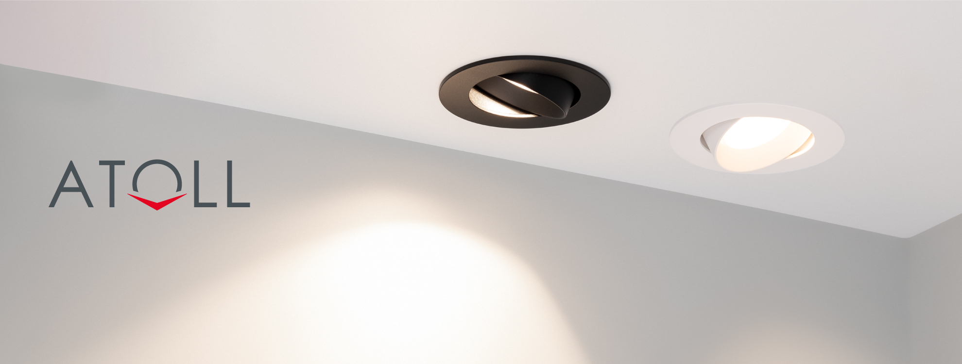Вариативность угла излучения Среди даунлайтов ATOLL вы найдете модели с узким (36°) и средним углом излучения (60°), что позволяет создать в одном пространстве акцентное и основное освещение в едином стиле.