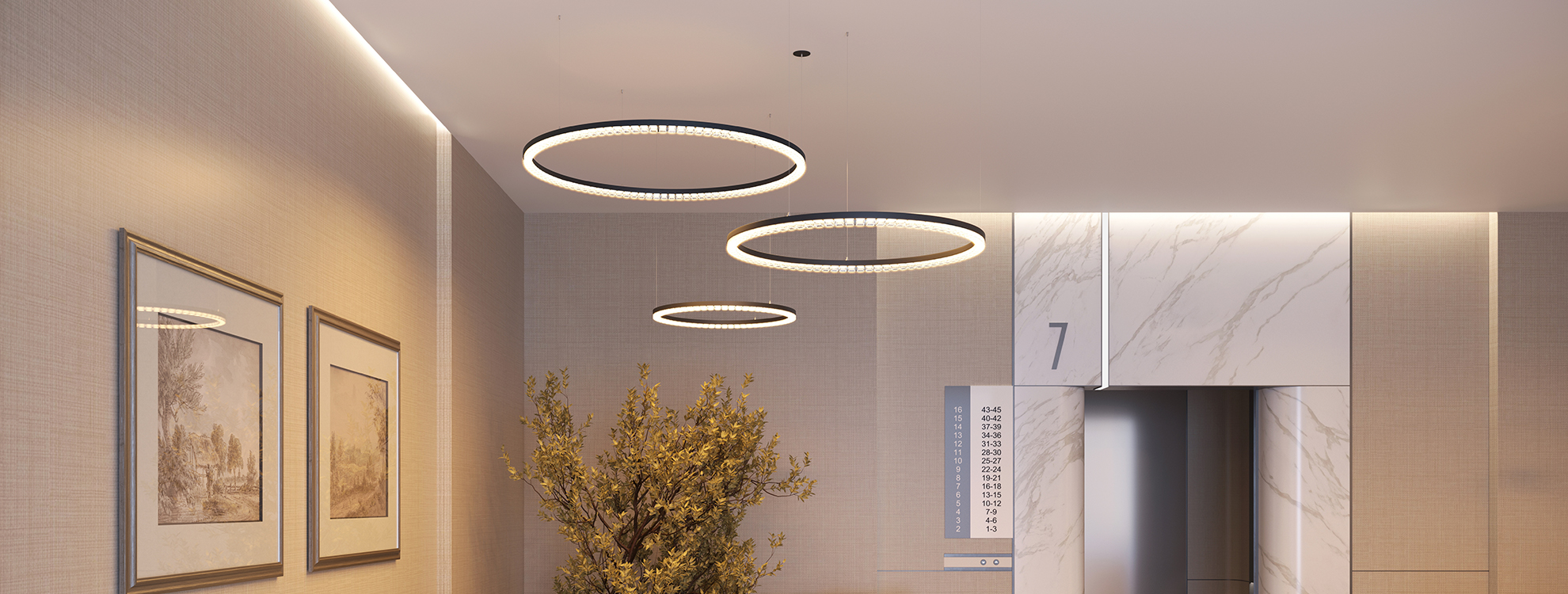 Светильники DIAMOND — эффектный дизайнерский элемент для общественных пространств, например торговых центров, офисов, галерей и премиальных жилых комплексов. Уникальный рассеиватель с линзами сочетает эстетику, функциональность и напоминает ювелирное изделие. Угол рассеивания 45° и плавная регулировка яркости по протоколу TRIAC позволяют реализовать комфортный общий или акцентный свет. Высокая цветопередача (CRI>90) раскрывает красоту естественных оттенков в интерьере.