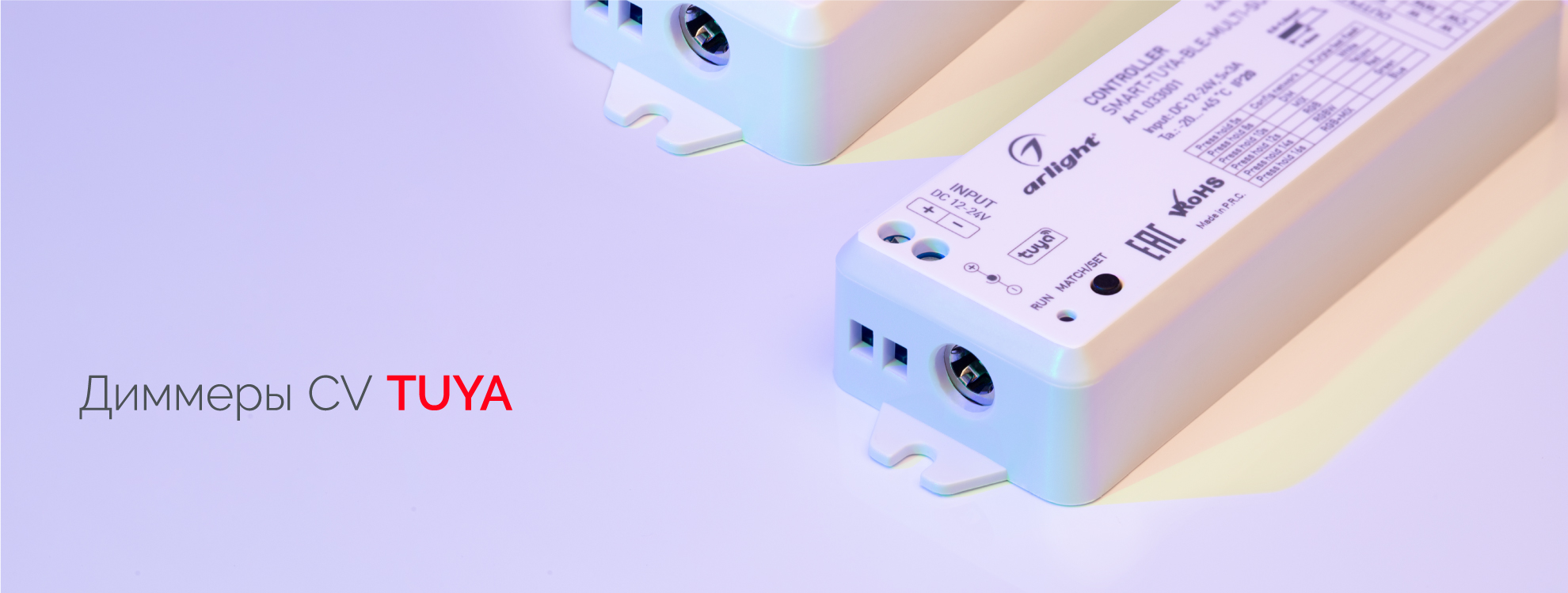 Диммеры с поддержкой беспроводной облачной платформы TUYA предназначены для управления со смартфона многоцветными светодиодными лентами RGBW, монохромными лентами и другими светодиодными источниками света с питанием постоянным напряжением 12–48 В и поддерживающими управление ШИМ (PWM).