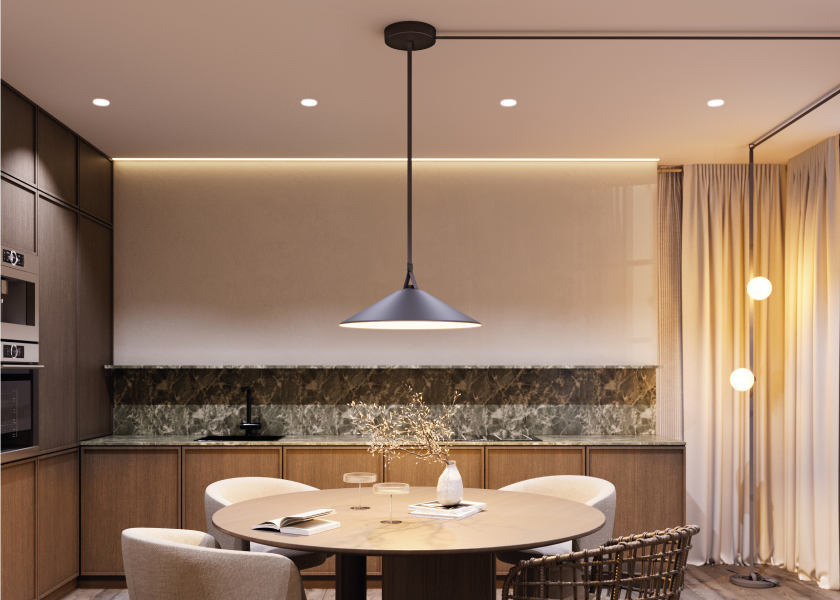 Широкий ассортимент светильников в единой черной гамме. Модели можно комбинировать между собой, создавая различные световые решения в рамках одной системы. В линейке представлены: • споты INBELT CUP с поворотным корпусом (вращение на 350°), углами свечения 25 и 34° и тремя вариантами мощности для акцентного света, • интерьерные светильники INBELT BOWL, INBELT SFERO, INBELT WOK для создания уютной атмосферы, • линейные светильники INBELT DOTS, INBELT FLAT для равномерного и яркого освещения. Светильники с высоким индексом цветопередачи (CRI>92) подходят для освещения жилых помещений, шоурумов, торговых залов. Настройка разных сценариев, яркости и цветовой температуры от теплого до холодного оттенка возможна с помощью протокола управления DALI. Монтаж выполняется на гибкий текстильный ремень.