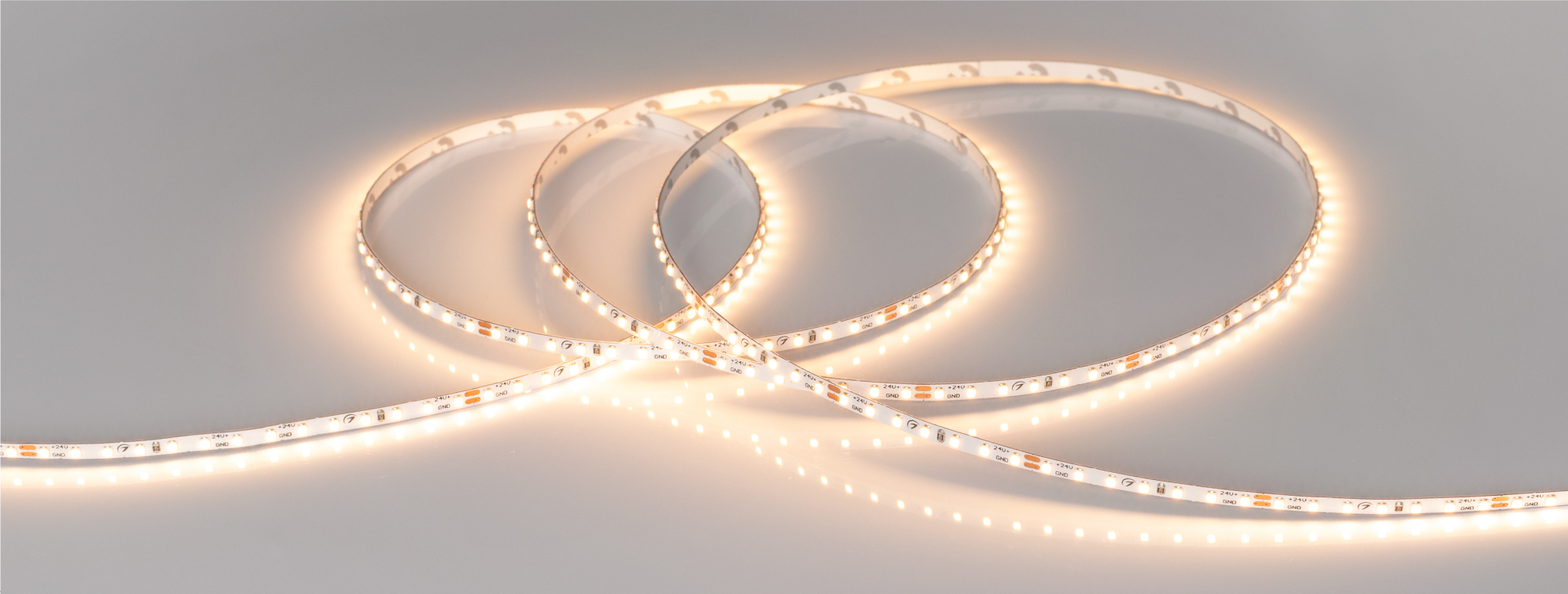 Высокая световая эффективность Световая эффективность ленты составляет 110 лм/Вт, благодаря чему образуется яркое свечение при меньшем расходе электроэнергии.