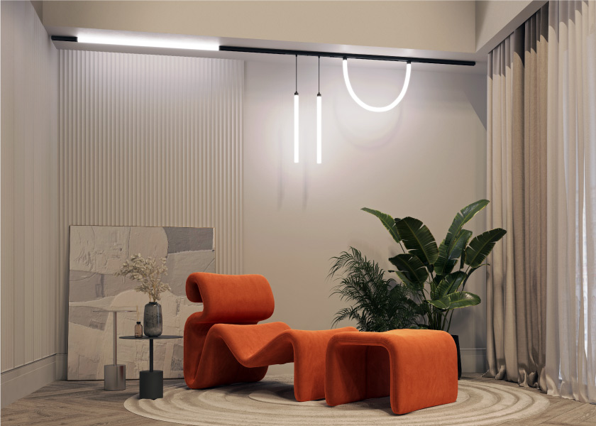 Ассортимент светильников для треков MAG-FLEX состоит из жестких и гибких неоновых трубок с дневным белым цветом свечения (4000 К). Жесткие трубки представлены накладной моделью длиной 500 мм и подвесной моделью длиной 1000 мм. Гибкие неоновые трубки выпускаются в трех вариантах длины: 1, 2.5 и 5 метров. Для регулирования общей освещенности нужно всего лишь добавить или убрать неоновые трубки из общей конструкции: их легко вынимать из трека и удобно перемещать вдоль него. Светильники можно сочетать друг с другом, создавая авторские световые решения, которые сделают интерьер неповторимым и запоминающимся.