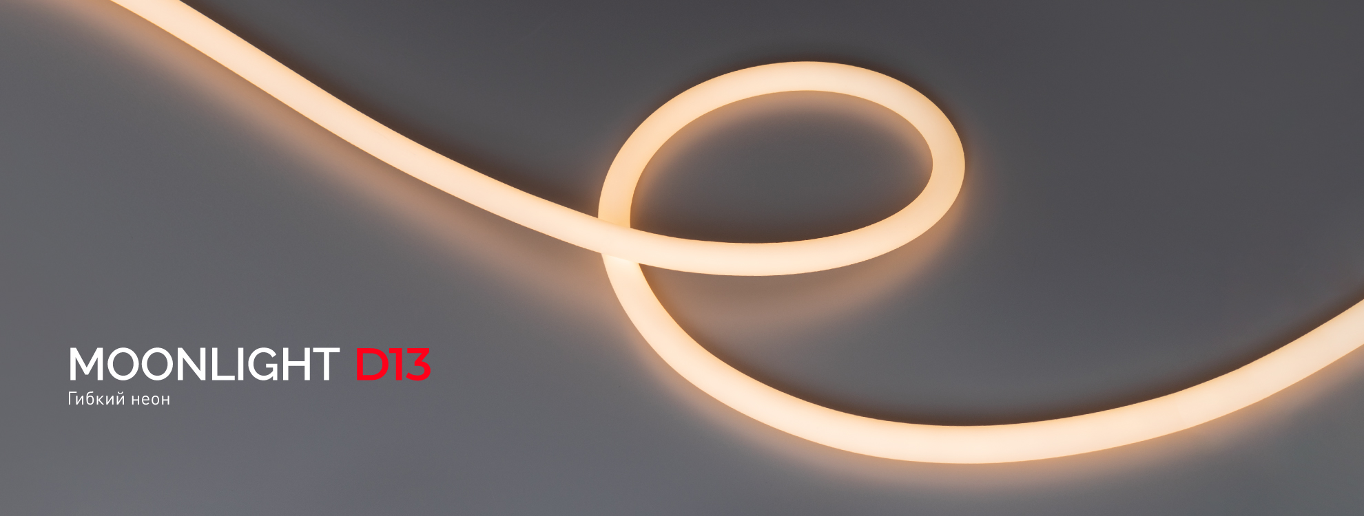 Гибкий неон MOONLIGHT с диаметром 13 мм обладает равномерным свечением, направленным на 360°. С помощью MOONLIGHT D13 возможно создать локальное и декоративное освещение, а также оригинальные арт-объекты. 3D-инсталляции на основе круглого гибкого неона гармонично впишутся в гостиные, кухни, детские, а также в коммерческие пространства.