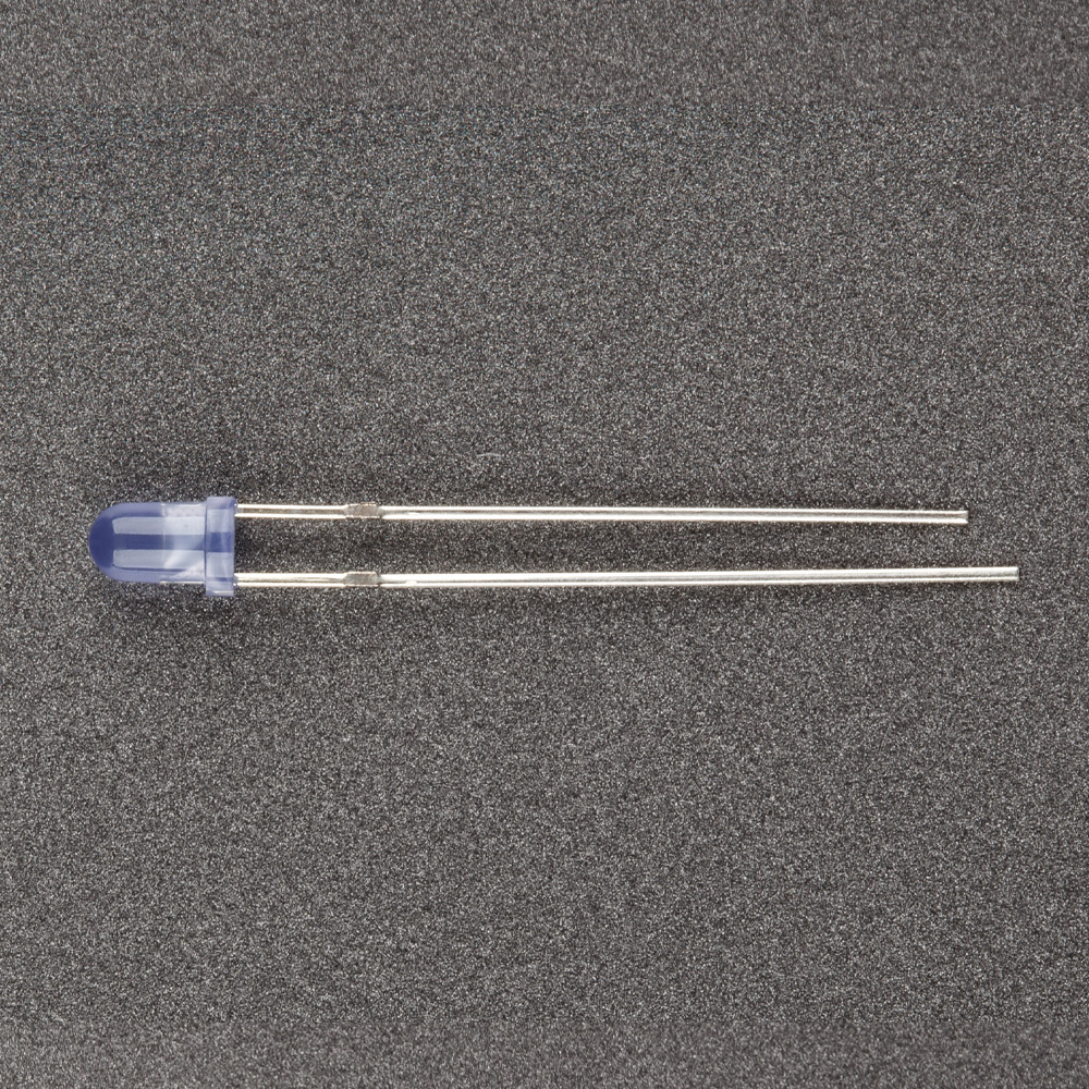 Поставка под заказ от 5000 шт. Выводной круглый светодиод, d=3 мм, диффузная синяя линза. Цвет свечения синий (460-470 нм). Угол излучения 60°. Сила света Iv=600-1000 мкд при If=20 мА. VF=2.9-3.3 В.