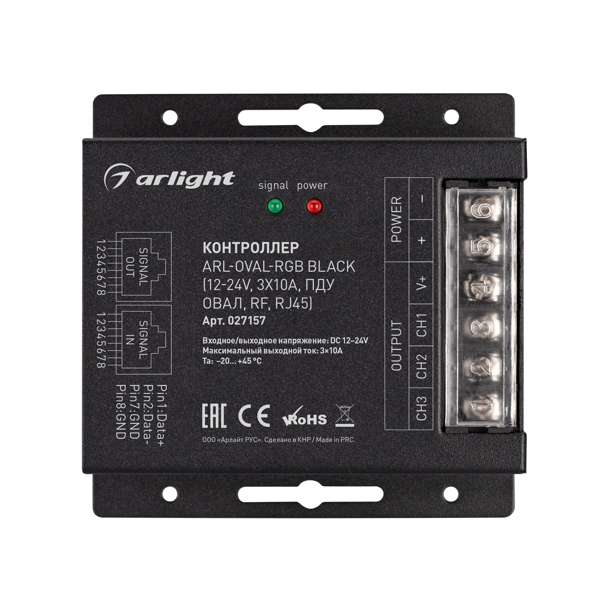 Контроллер ARL-OVAL-RGB Black (12-24V, 3x10A, ПДУ Овал, RF, RJ45) (Arlight, IP20 Металл, 3 года)