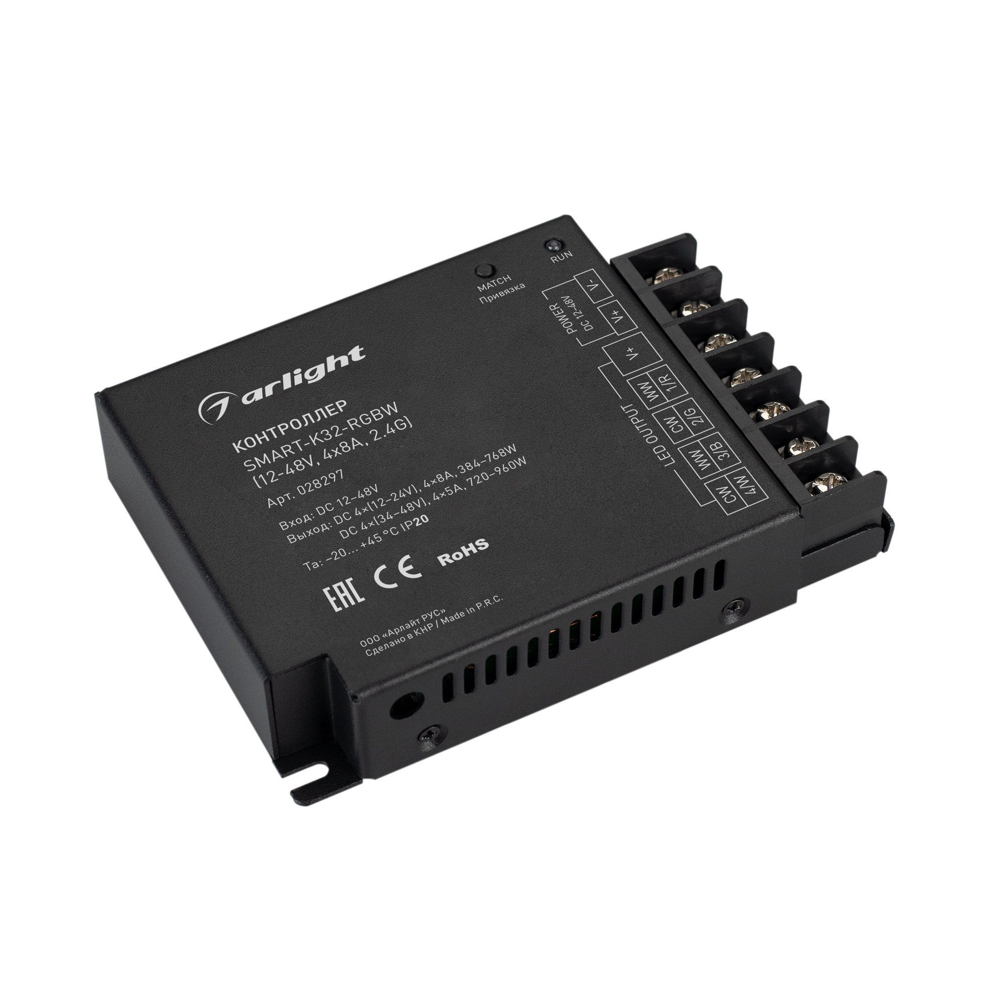 Контроллер SMART-K32-RGBW (12-48V, 4x8A, 2.4G) (Arlight, IP20 Металл, 5 лет)