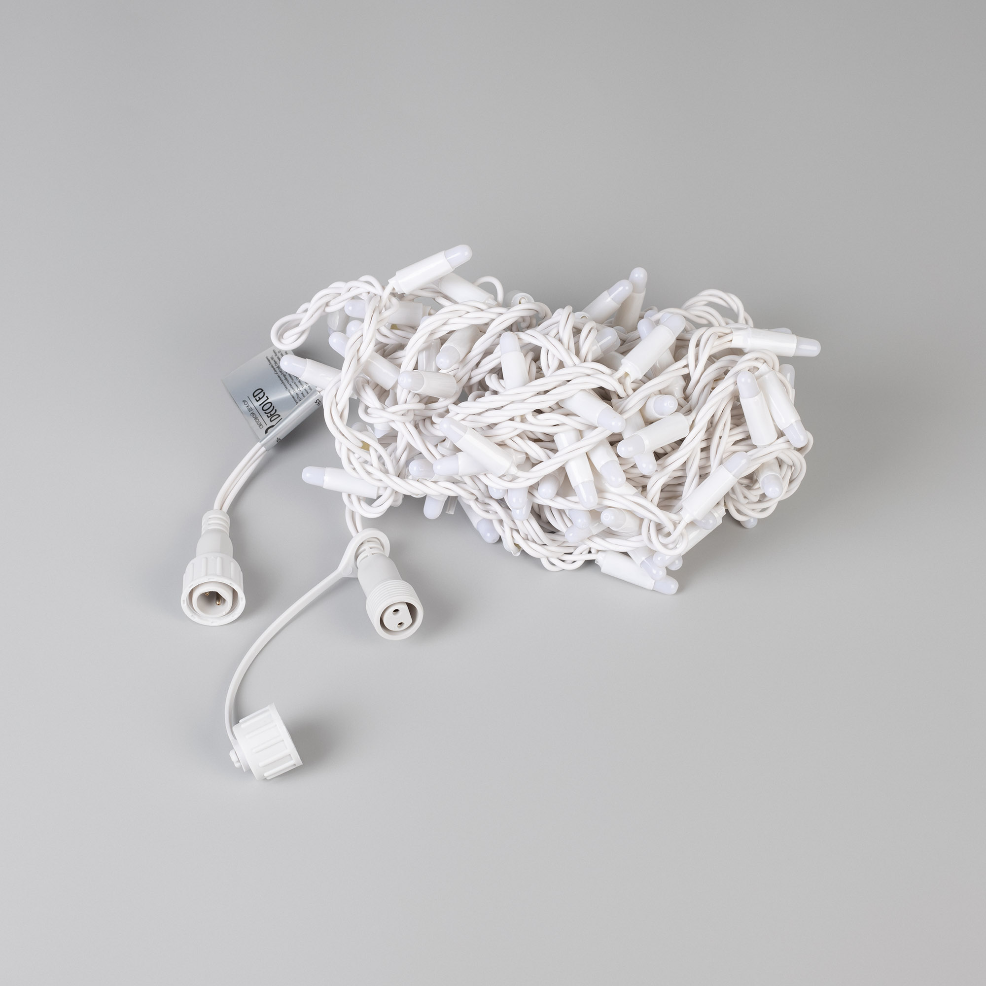 Универсальная светодиодная гирлянда "НИТЬ" серии Classic, предназначенная для декорирования и создания праздничного настроения как внутри помещений, так и снаружи (степень пылевлагозащиты IP65 позволяет размещать гирлянду на улице под навесом). Имея длину 10000 мм, она может использоваться для оформления средних и больших площадей. Универсальные соединительные разъемы позволяют наращивать длину до 50 м без использования дополнительных аксессуаров. Выпуклая молочно-белая линза и эффект мерцания редких точек обеспечивают мягкое и динамичное освещение украшаемых объектов. Теплый белый свет, в сочетании с холодным белым, помогает создать необходимую атмосферу для декоративного объекта. Провод изготовлен из ПВХ и окрашен в белый цвет. Аксессуар для подключения гирлянды к сети приобретается отдельно.