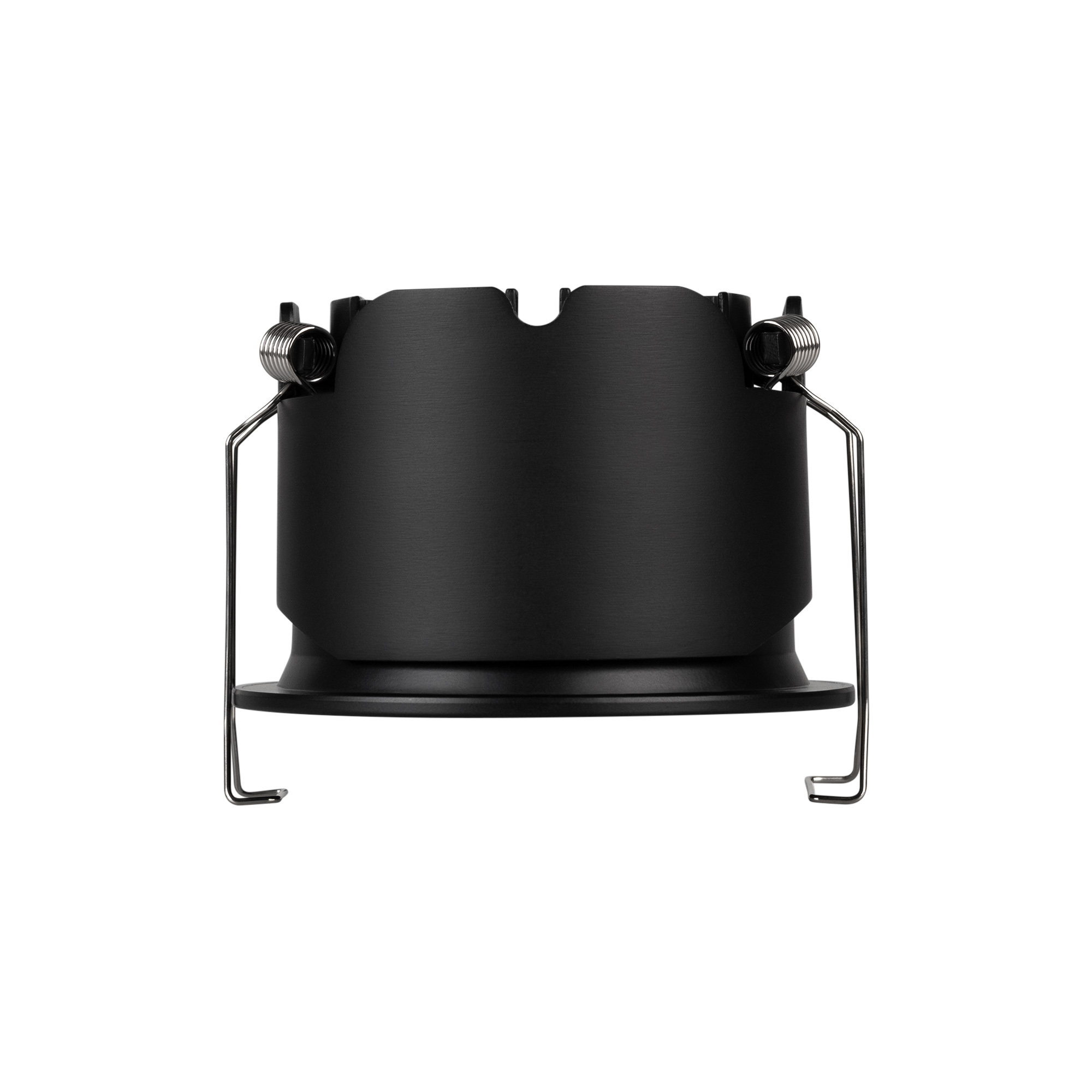Встраиваемый светильник даунлайт. Мощность 10 Вт, св. поток 980 лм, 98 лм/Вт, тёплый 3000 K, CRI>90, угол 36°, напряжение питания 230 В. Чёрный круглый корпус из алюминия, степень защиты IP20. Размер: диаметр 82 мм, высота 53 мм. Монтаж встраиваемый, установочное отверстие: диаметр 75 мм. UGR<14. Драйвер 30-42 В, 250 мА, пульсация <2%.