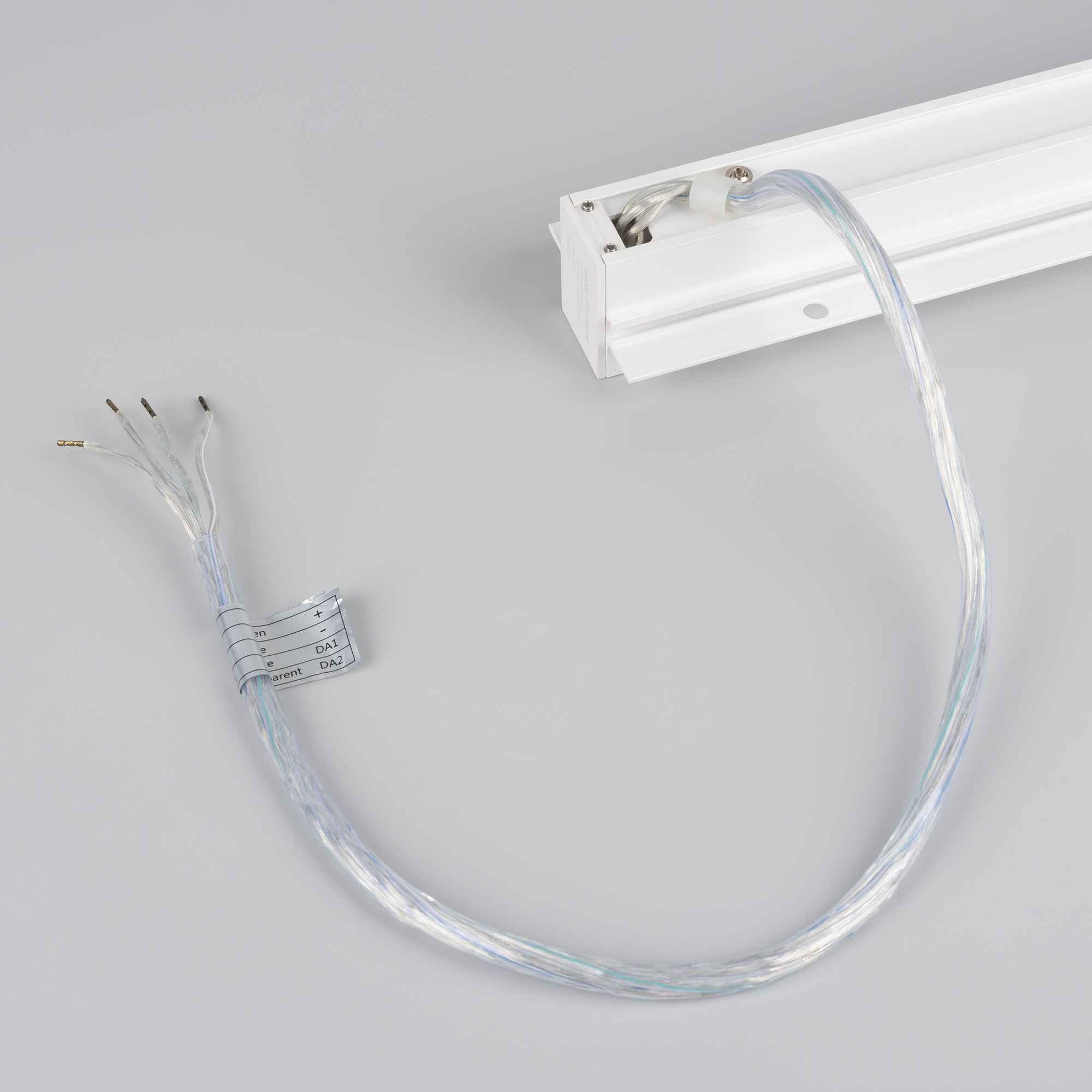 Встраиваемый магнитный трек с фланцем для монтажа в гипсокартонный потолок, длина 2000 мм. DC24V, позволяет диммировать светильники по протоколу DALI. Материал алюминий, цвет белый. Две заглушки в комплекте. Размер ДxШxВ: 2003x55x38 мм. Размер (с учетом заглушек и фланцев). К плате идет провод 24В длиной 1м.