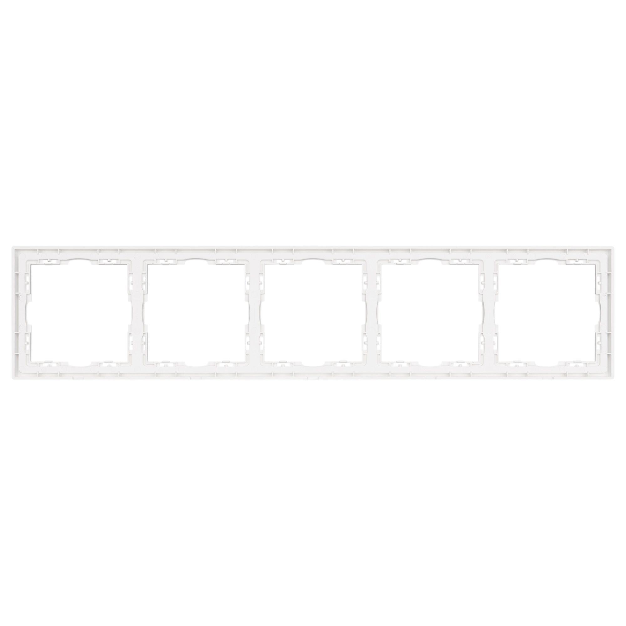 Рамка пластиковая на 5 постов, под встраиваемый механизм. Цвет - белый, с Soft-Touch покрытием. Среднего уровня герметичности IP20. Ориентация монтажа горизонтальная. Габаритные размеры: длина 365 мм, ширина 81 мм, высота 8,55 мм. Гарантийный срок 12 мес.