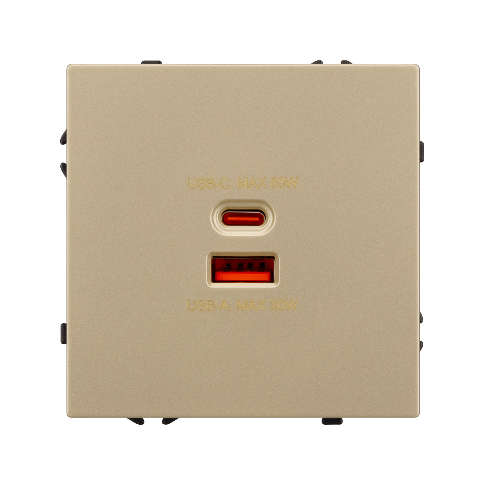 Механизм розетки с быстрой USB зарядкой, совместимый с рамками серии NOBE, создает утонченный минималистичный вид. Наличие USB Type A и Type C портов позволяет существенно сократить количество используемых розеточных постов под евровилку, сохраняя единую стилистику интерьера всего современного дизайн-проекта. Оба разъема поддерживают протокол быстрой зарядки Quick Charge QC 3.0, помимо этого для разъема Type C доступен протокол Power Delivery*.