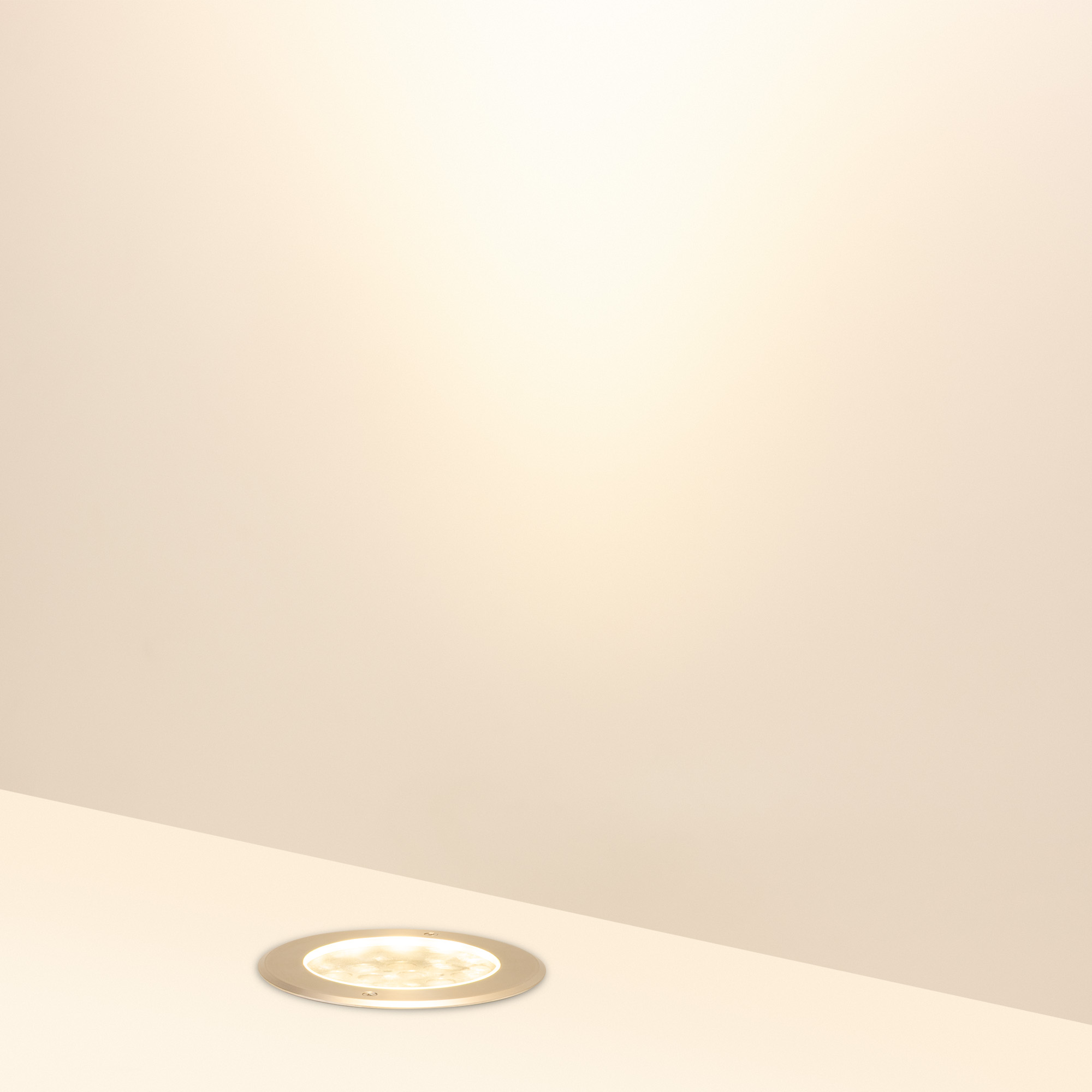 Встраиваемый светодиодный светильник для грунта и пола. Мощность 36Вт, световой поток 2824 лм, цвет теплый 3000К. CRI(Ra)>80, угол 20°. Круглый влагозащищенный корпус IP67, нержавеющая сталь. Экран закалённое стекло. Питание 230В, 36Вт. Размер DxH Ø210x125мм. Установка в отверстие DxH Ø195x119мм.