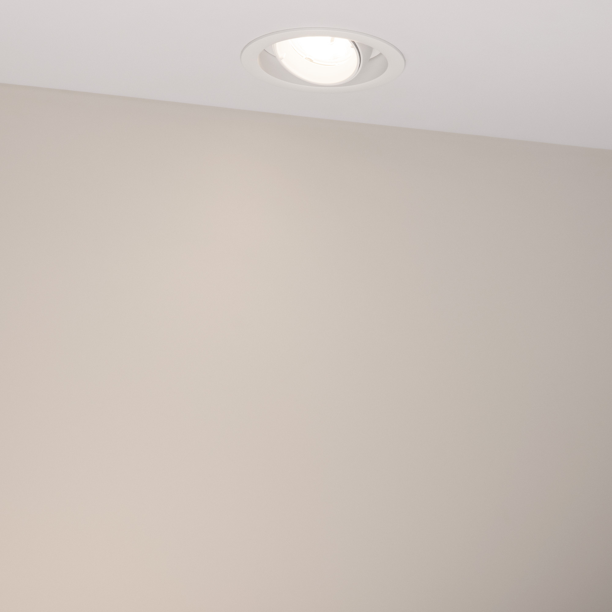 Встраиваемый карданный светильник. Мощность 20 Вт, св. поток 2132 лм, 107 лм/Вт, дневной 4000 K, CRI>92, угол 40°, напряжение питания 230 В. Белый корпус из алюминия, белая вставка, степень защиты IP20. Размер: диаметр 110 мм, высота 105 мм. Монтаж встраиваемый, установочное отверстие: диаметр 95 мм. Драйвер 24-42 В, 500 мА, пульсация <2%.