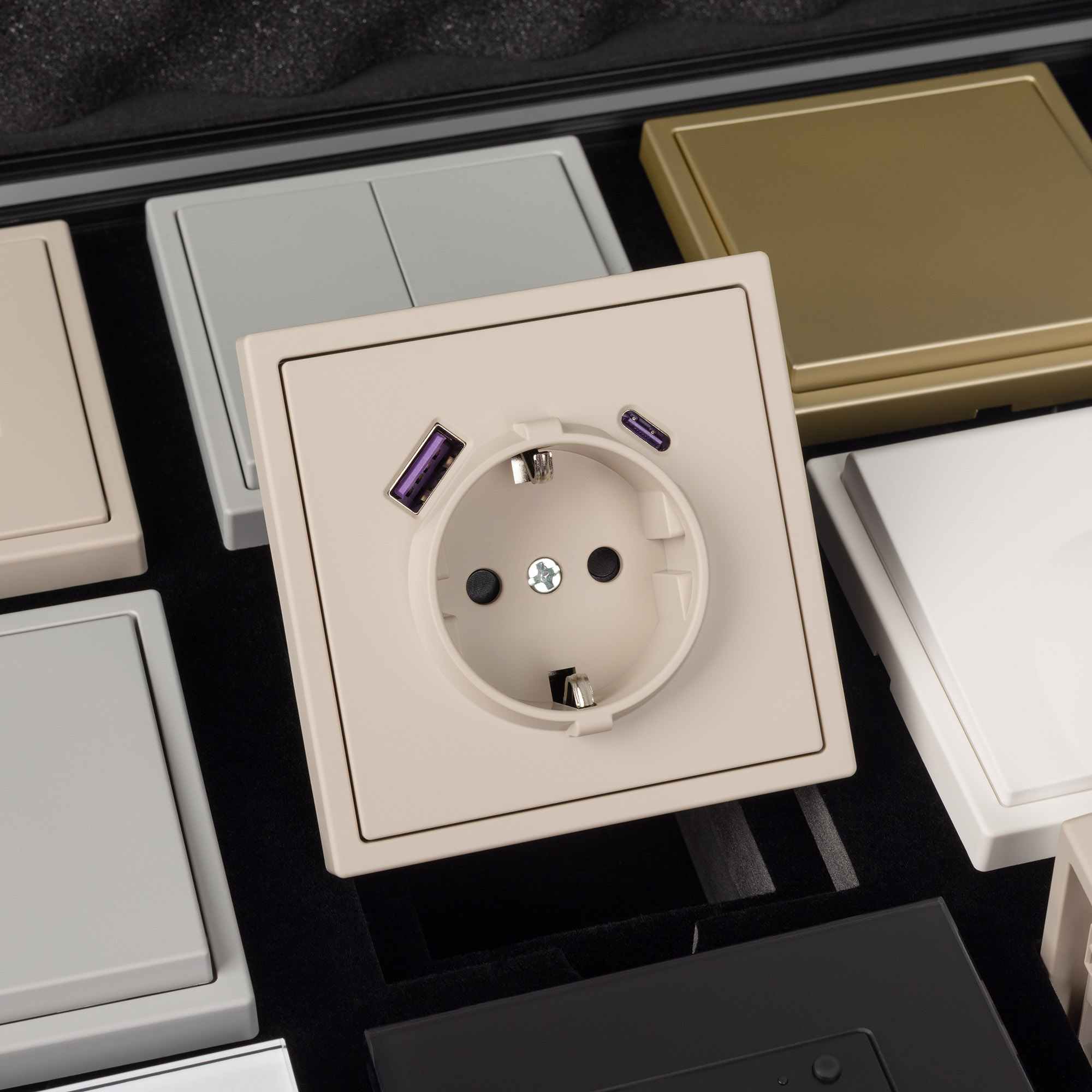 Механизм розетки под евровилку с доп. Выходами USB Type A+C в цвете Кашемир – арт. 059444