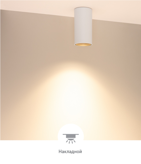 Распределение света За счет узкого угла излучения (40°) и углубленного внутрь корпуса рассеивателя в пространстве создается акцентное освещение без слепящего эффекта.