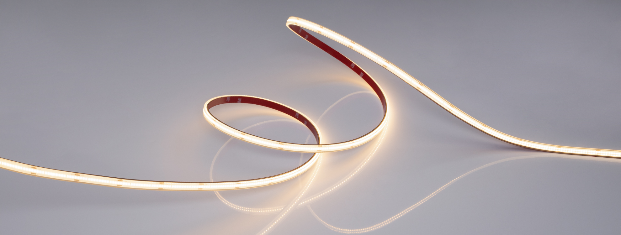Благодаря светодиодам CSP лента образует равномерное свечение без видимых точек светодиодов.