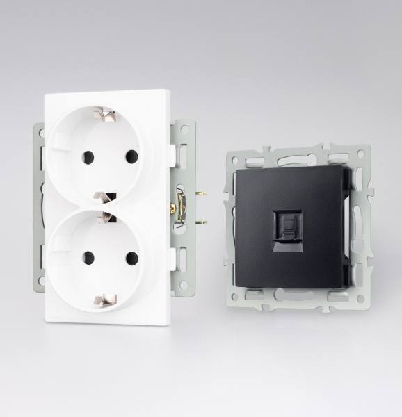 За счет универсальных встраиваемых механизмов выключатели SWT и розетки SCT можно комбинировать с рамками разных цветов и материалов, подбирая свое индивидуальное решение.