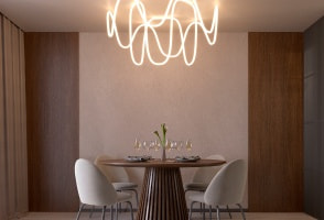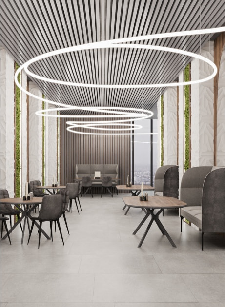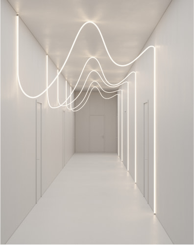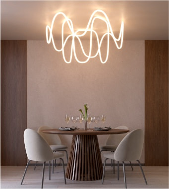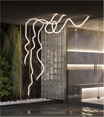 Изящные герметичные ленты MOONLIGHT 360° с матовым рассеивателем — новый формат неона XXI века. С ним вы сможете создавать впечатляющие световые инсталляции разных форм и размеров не только в коммерческих пространствах, но и у себя дома.