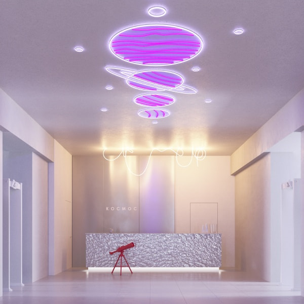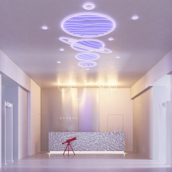 С ними ваш интерьер разнообразят светящиеся буквы, волнообразные линии света или нестандартные дизайнерские светильники из фигурного профиля.
