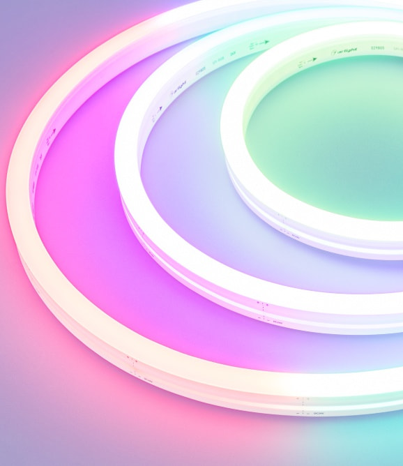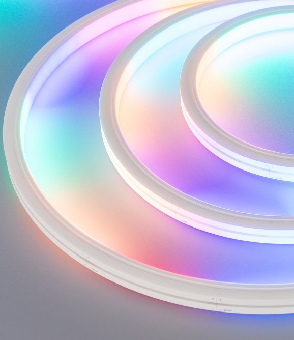 Герметичные RGB-ленты с управлением по протоколу SPI или DMX представлены с возможностью как горизонтального, так и вертикального изгиба.