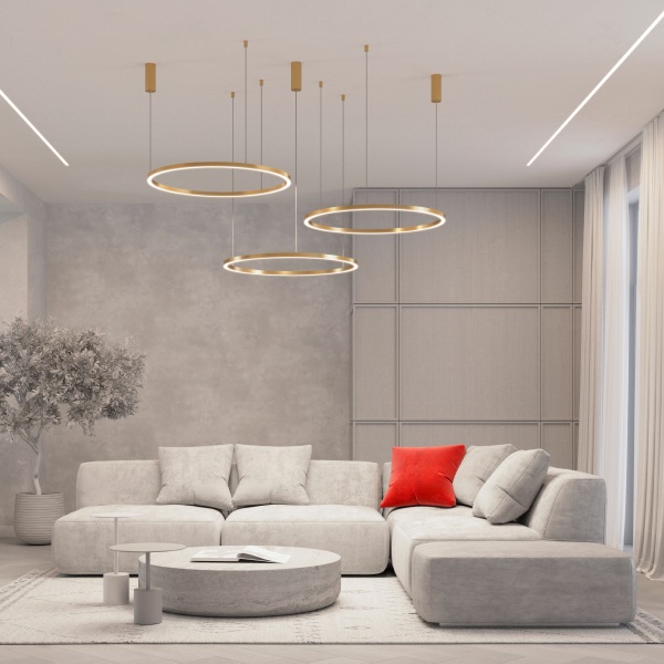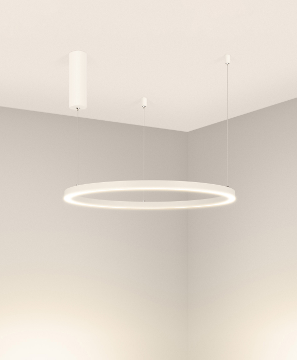 Подвесной светильник CONGO в форме кольца станет элегантным и воздушным элементом в интерьере. Благодаря силиконовому экрану свечение по окружности мягкое и ненавязчивое, однако его достаточно, чтобы создать основное освещение даже в просторных комнатах — гостиных, спальнях, лобби и переговорных.