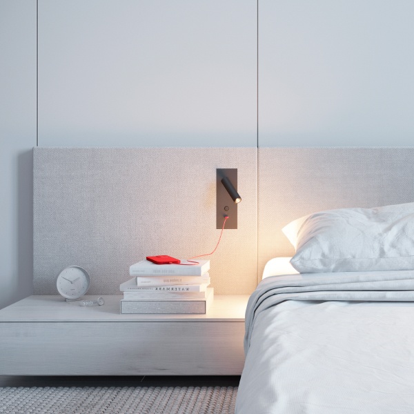 Настенный светильник BED CHARGE BUILT — финальная деталь в уютном и эргономичном интерьере. Светильники обладают узким углом излучения и корпусом, который вращается вокруг своей оси на 350°, тем самым создавая направленное акцентное освещение.