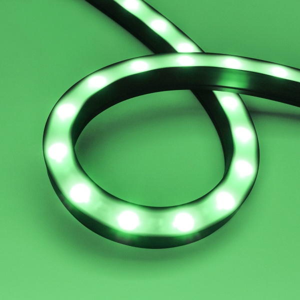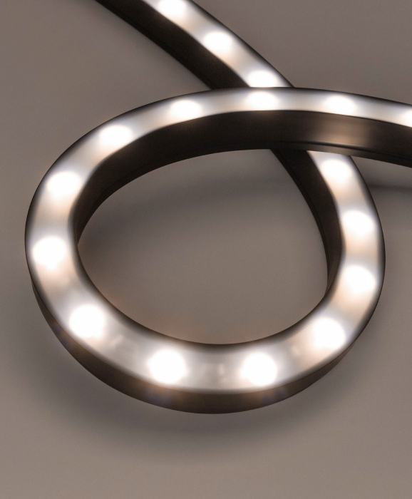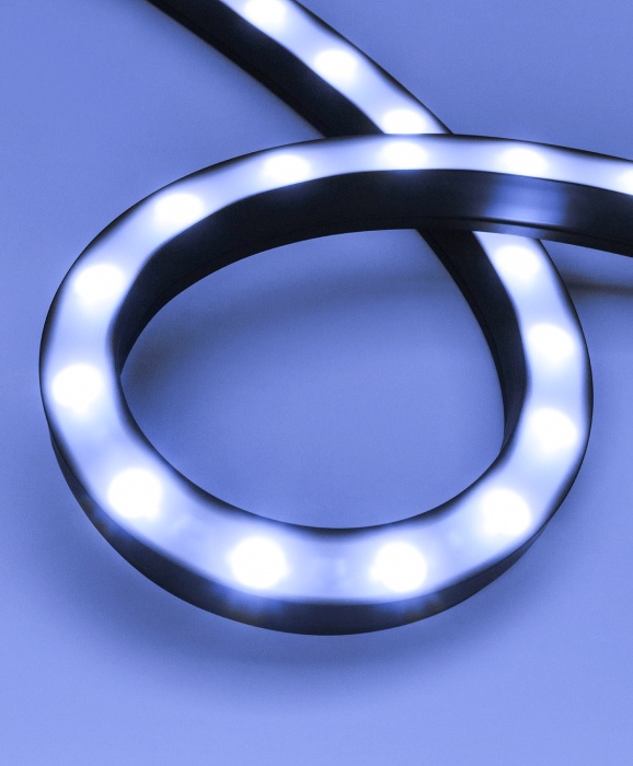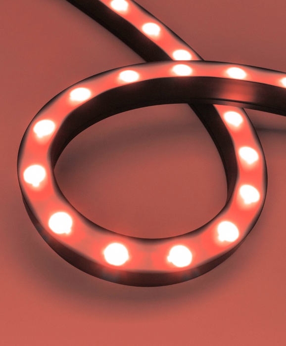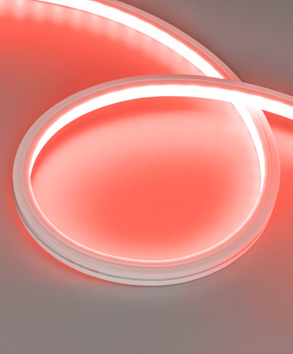Вся поверхность ленты, включая торцевые заглушки, обладает равномерным свечением. Квадратная форма сечения позволяет легко устанавливать неон в профиль или крепить на архитектурные элементы.