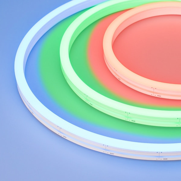 Однородное разноцветное свечение без применения рассеивающих экранов — с новыми лентами COB RGB это возможно! Заливка матовым силиконом и высокая плотность светодиодов обеспечивают равномерное свечение по всей длине ленты.
