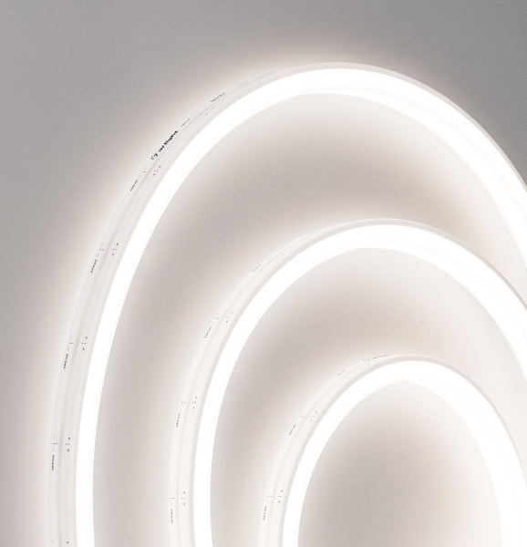 Новинки герметичных лент COB не боятся ни жары, ни влаги! Создавайте линии света с равномерным свечением без применения рассеивающих экранов даже при температуре до +105 °С.