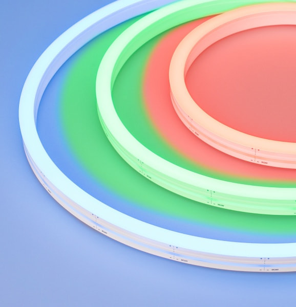 Невозможно представить серию гибкого неона MOONLIGHT без разноцветного свечения. Поэтому в этом месяце мы дополнили линейку RGB- и RGBW-лент новыми размерами.