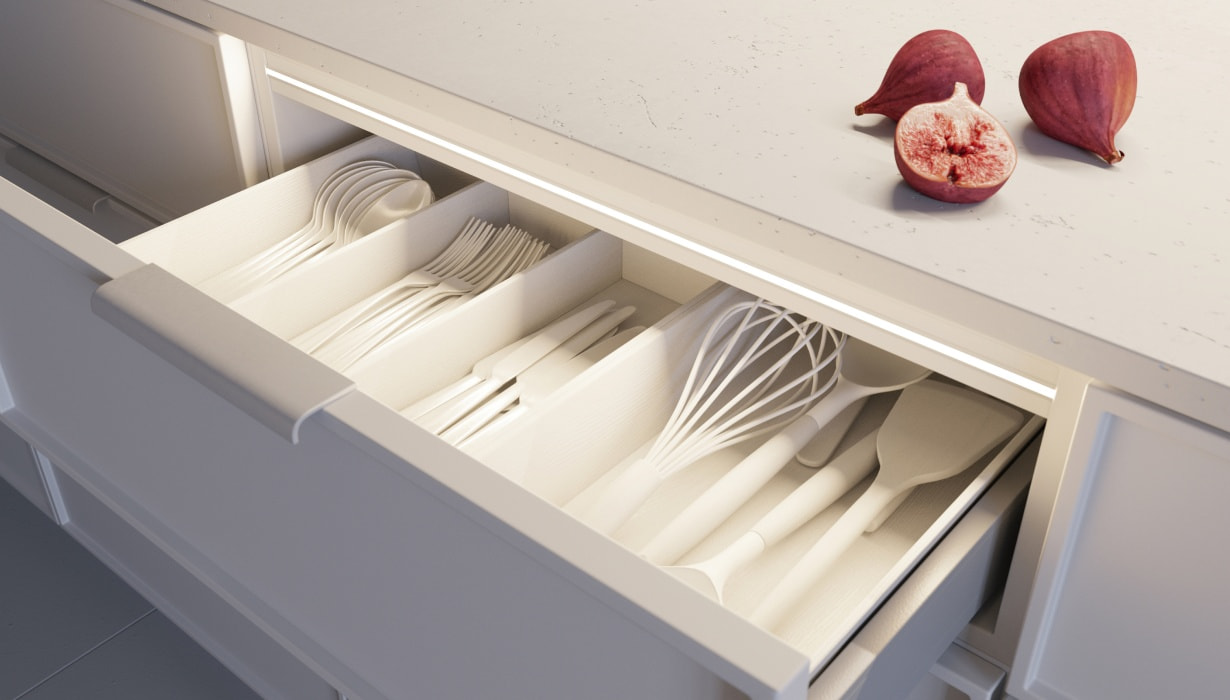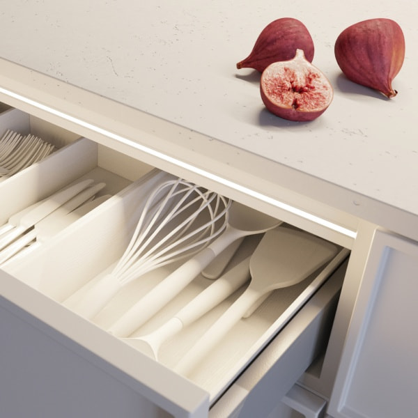 Благодаря тому, что ширина платы всего 3 мм, лента подчеркнет элементы мебели, небольшие детали интерьера и контуры букв. Небольшой шаг резки — 20 мм — позволит создать подсветку необходимой длины.