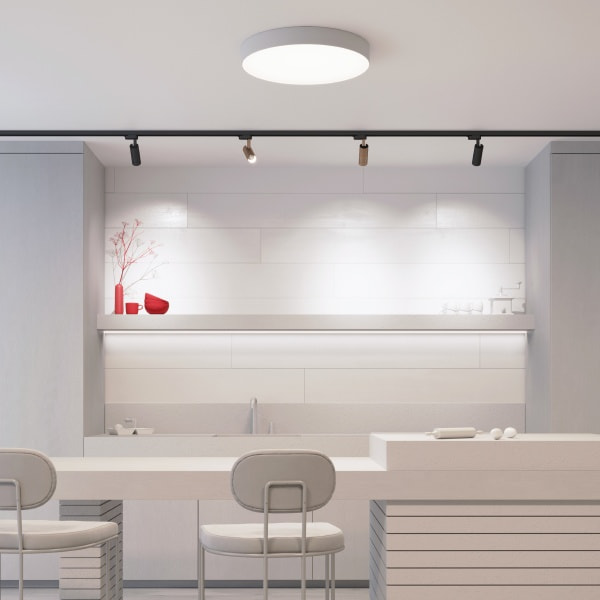 Освещение холла, офиса, МОП или террасы — светильник FLOWER в лаконичном влагозащищенном корпусе подойдет как для жилых и коммерческих, так и для промышленных помещений.