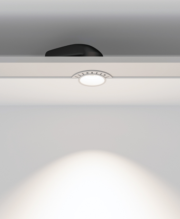 За счет Г-образной формы радиатора компактные светильники легко встраиваются в неглубокие запотолочные пространства, сохраняя ценные сантиметры высоты. При необходимости светильник также можно быстро извлечь из монтажного отверстия с помощью встроенной в корпус полукруглой скобы.