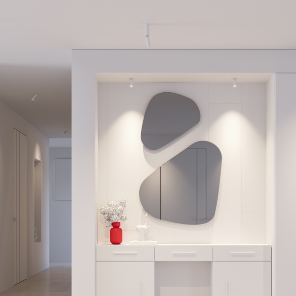 В серии представлено три вида корпуса, что дает возможность комбинировать разные типы светильников одной серии для создания интересных решений: накладной поворотно-откидной, встраиваемый поворотно-откидной и встраиваемый под шпаклевку без внешней рамки с телескопическим выдвижением светового модуля. Корпус поворотных моделей вращается вокруг своей оси на 350° и отклоняется по вертикали на 90°.