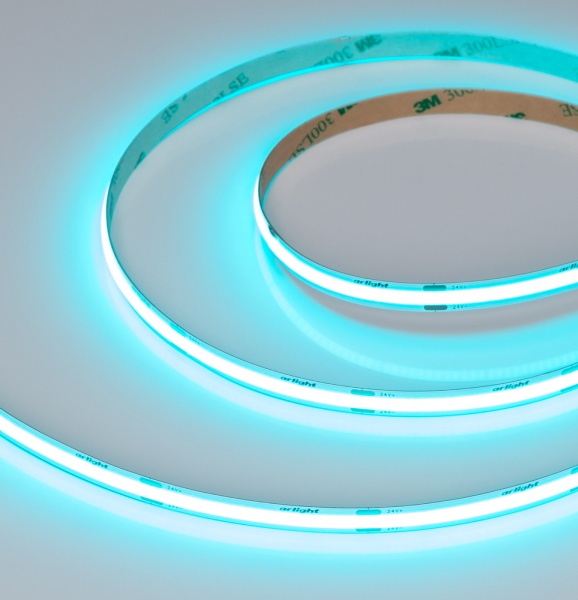 Главная особенность COB-лент — равномерное свечение без видимых точек светодиодов. В сочетании с необычными цветами свечения — небесно-голубым, пурпурно-розовым, бирюзовым и др. — новинки становятся отличным выбором для декоративной подсветки.