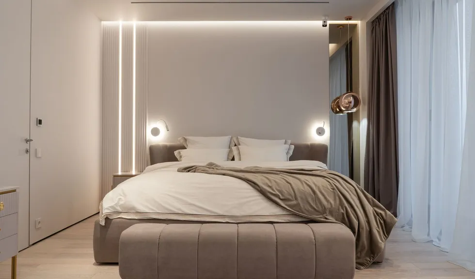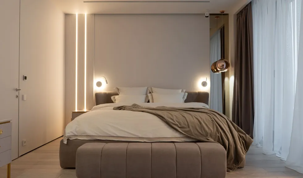 Линии света — один из основных источников декоративного и акцентного освещения. В светлой прихожей вертикальные световые линии эффектно подчеркивают зеркала, визуально еще больше придавая им высоту. В мастер-спальне особое управление подсветкой и линиями света позволяет включать и выключать отдельно каждый элемент, создавая в комнате подходящую атмосферу.