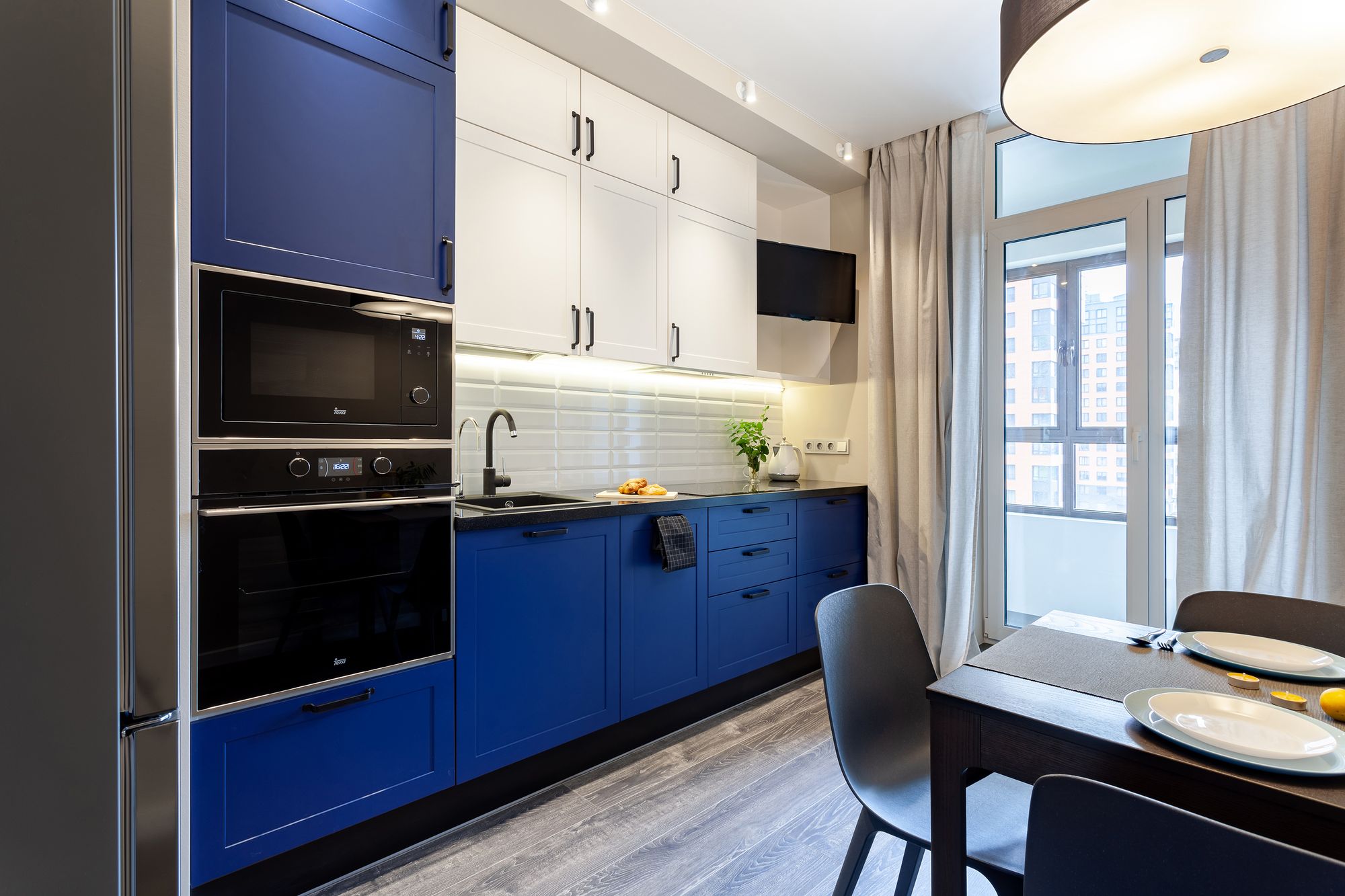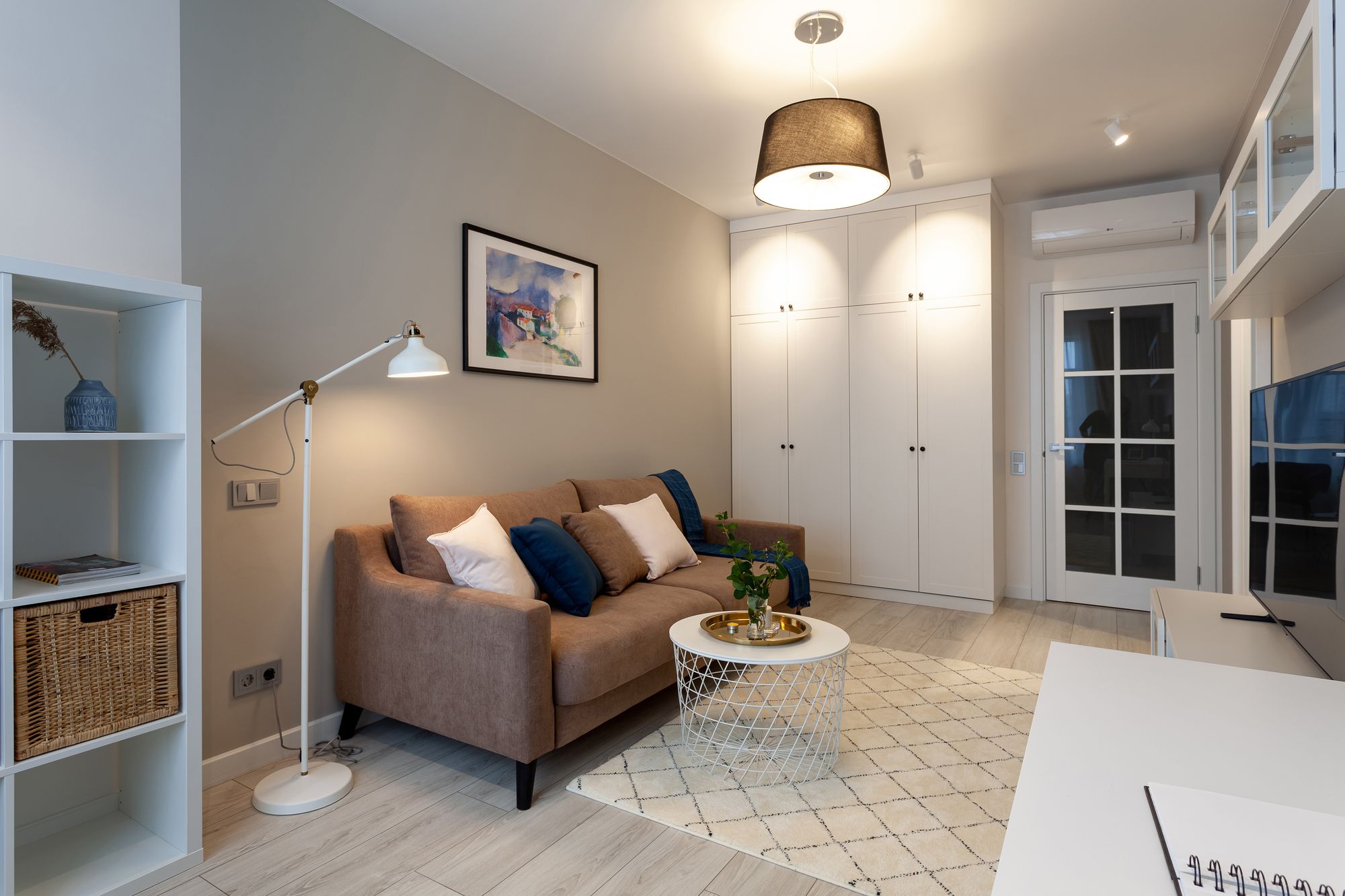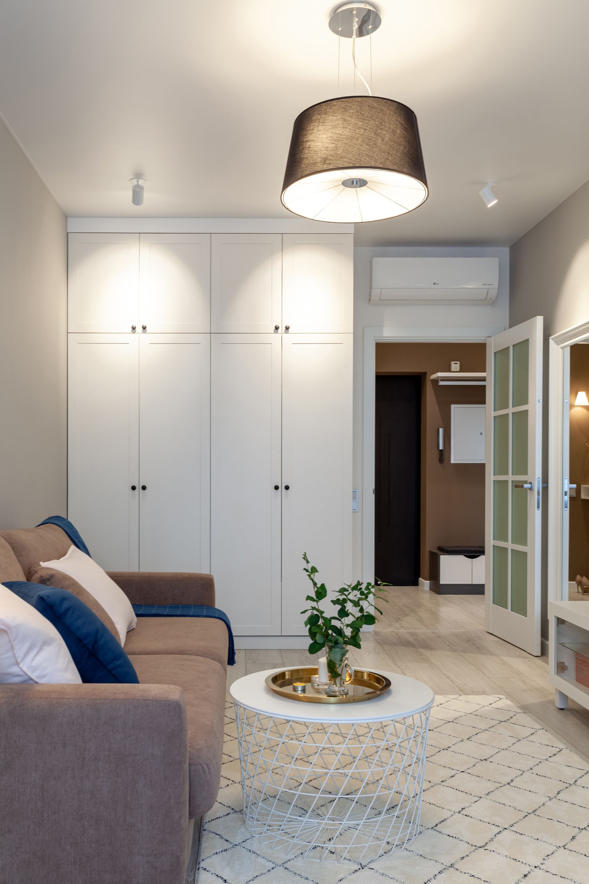Две одинаковые по планировке квартиры, в которых применили разные цветовые решения и одинаковое освещение. Создание приятной и комфортной световой атмосферы доверили двум типам поворотных светильников. Встраиваемые светильники с узким углом излучения помогают создать акцентное освещение, направить свет на детали интерьера и выделить определенные зоны в квартире. Белый алюминиевый корпус светильников выполнен в современном лаконичном стиле и гармонично вписываются в интерьер. В каждой квартире одинаковые светильники с приятным теплым свечением и разной функциональностью: для декоративной подсветки или основного освещения.