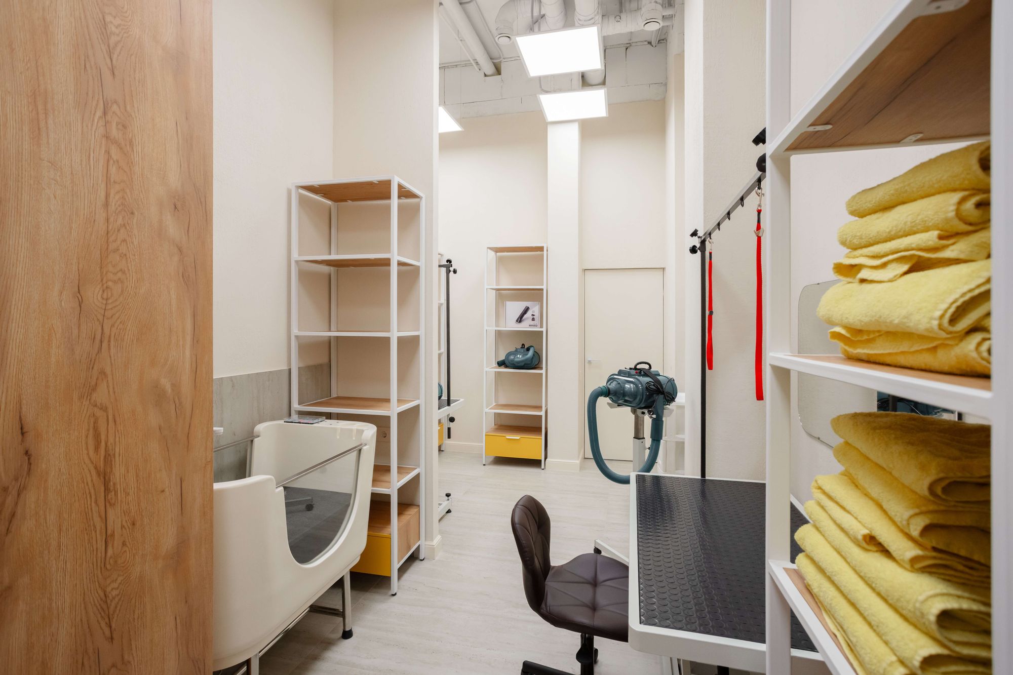 Задача: создать практичный, стильный и комфортный интерьер для питомцев, их владельцев и персонала на площади 78 м2.