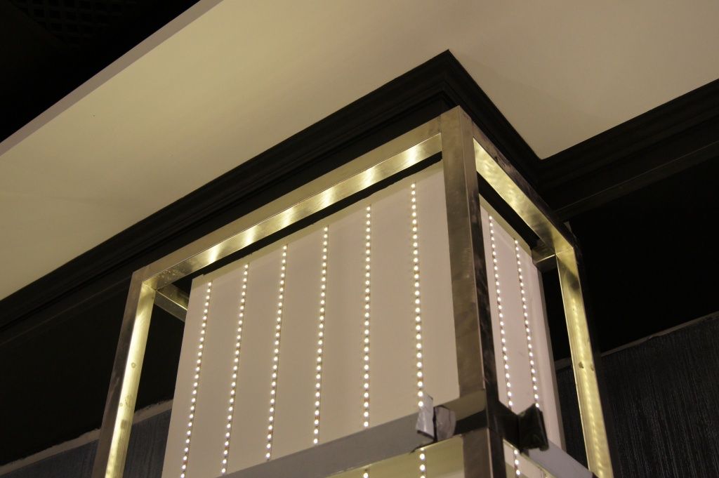 В клубе установлены наборные и пескоструйные витражи, которые, благодаря грамотно организованной равномерной подсветке, предстают во всей своей яркости и безупречной красоте. С помощью светодиодного оборудования был сымитирован естественный свет, витражи при таком освещении смотрятся максимально выигрышно!