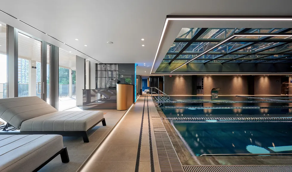 Фитнес-центр премиум-класса Encore Fitness состоит из нескольких этажей и включает в себя бассейн, термальные SPA-зоны, тренажерные залы, а также зал для занятий боевыми искусствами. Индивидуально для каждой зоны было разработано освещение с учетом всех нюансов проводимых в них активностей.