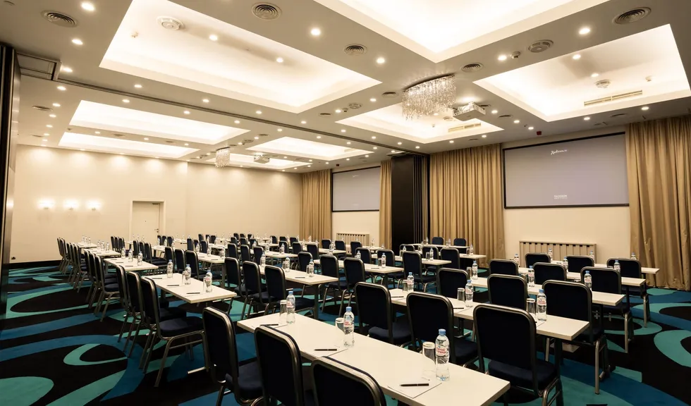 Освещение конференц-зала проектируется с учетом многофункциональности пространства: в нем проводят презентации, видеоконференции, совещания и торжественные мероприятия. Применение световых сценариев — один из ключевых пунктов для создания такого многообразия.