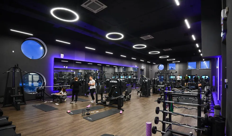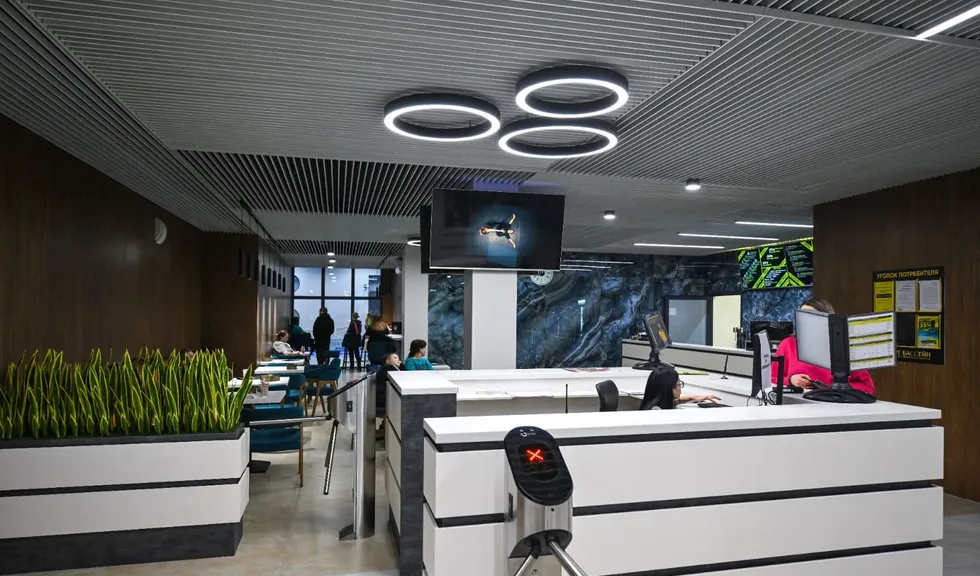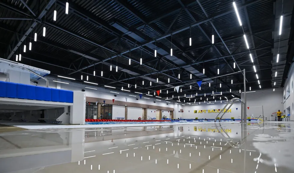 Сердце спорткомплекса — бассейн — освещается множеством светильников, выполненных на основе круглого профиля ROUND. Подвесные светильники со свечением 360° — отличное решение для потолков с открытыми коммуникациями: они не только легко устанавливаются, но и перетягивают внимание на себя. Матовые экраны ROUND образуют приятное рассеянное свечение, которое не создает резких бликов на воде.