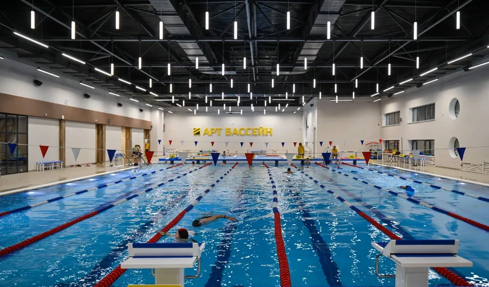 Чтобы гармонично вписаться в интерьер и не перегрузить спортивный комплекс «Арт Бассейн» строгой геометрией, были подобраны соответствующие источники освещения.
