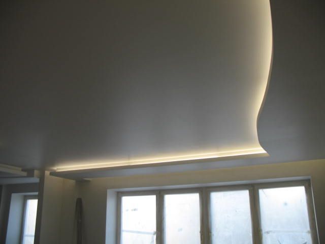В данном проекте была реализована светодиодная подсветка потолков и карнизов из гипсокартона.
