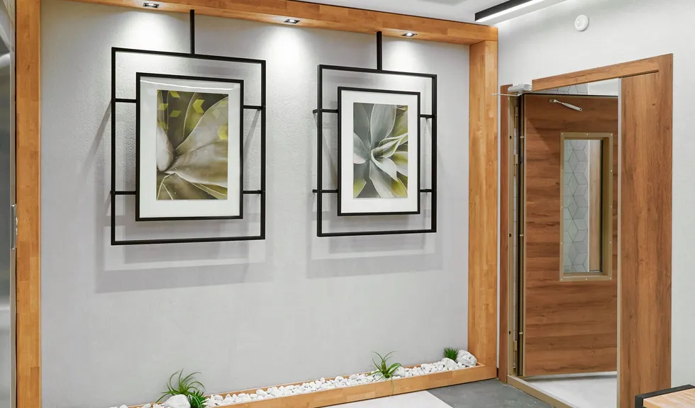 За эстетику на этажах отвечают картины, акцент на которых делается с помощью встраиваемых светильников CL SIMPLE. Карданный механизм позволяет направлять световой поток в нужную сторону, а узкий угол излучения образует акцентное световое пятно на картине. Высокий индекс цветопередачи (CRI>90) обеспечивает восприятие цветов практически как при естественном солнечном свете.