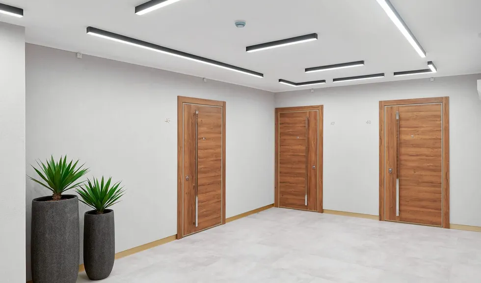 При планировании мест общего пользования в ЖК «Экопарк» стояла задача, чтобы общественные пространства воспринимались как продолжение квартиры, были эстетичны, функциональны и гармоничны. И освещение во многом помогло добиться желаемого эффекта.